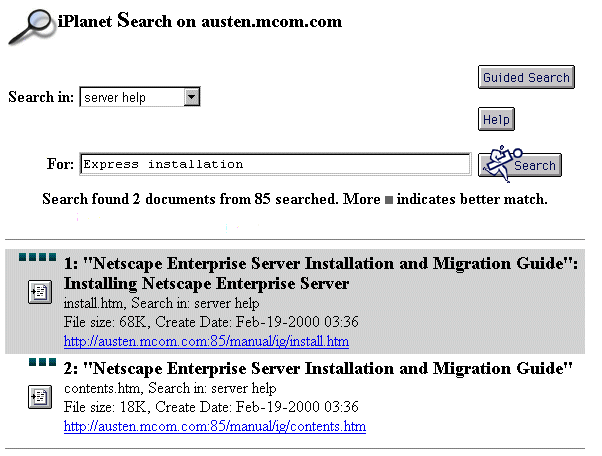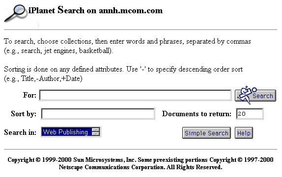 Displaying a Document In the default installation of iPlanet Web Server, when you obtain a list of the documents that match your search criteria, you can select a single document to display in your web browser. The browser can display the original document or you can choose to display the document with additional formatting so that your search query word or phrase is highlighted with such text attributes as color, boldface, or blinking.